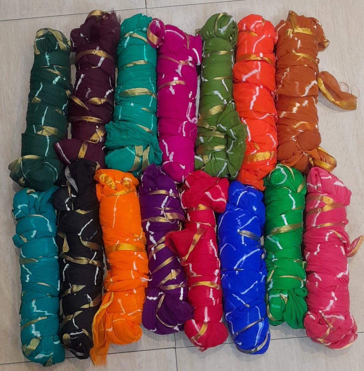 ​Work: Traditional Leheriya (wave) pattern with a delicate golden gota patti border.
