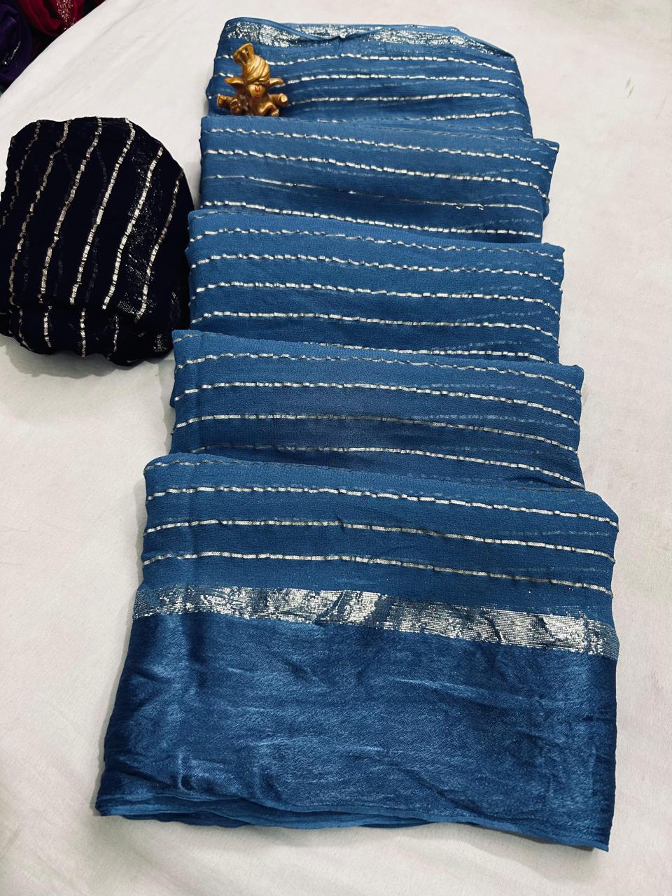 Satin patta Saree Blue